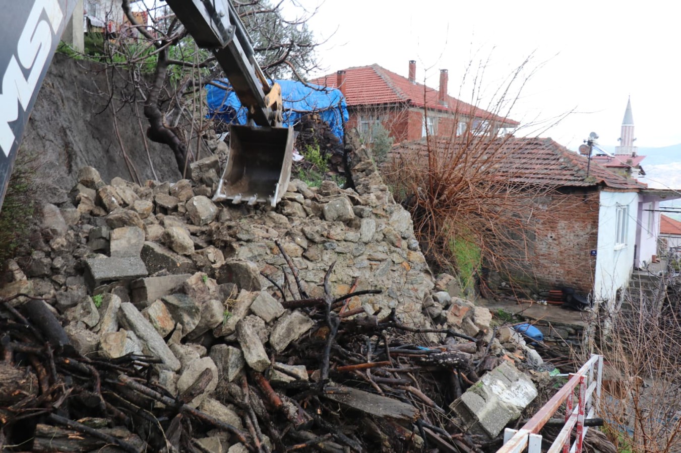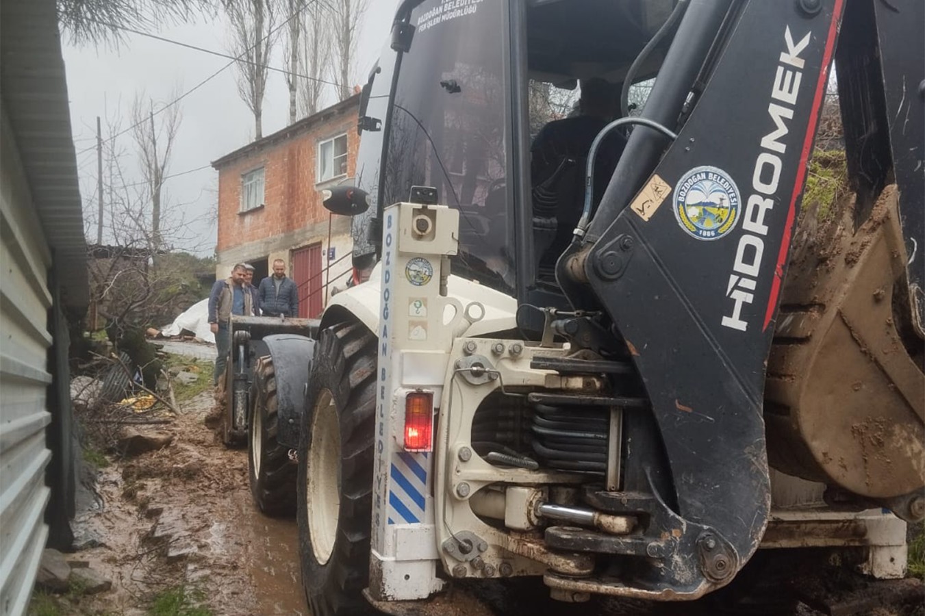 Sorumluluk sahası ayrımı gözetmeksizin, risk oluşturan tüm alanlarda güvenlik önlemleri alınmış; yol açma, zemin güçlendirme, duvar onarımı ve yağmur suyu tahliye hatlarının kontrolü çalışmaları eş zamanlı olarak sürdürülmektedir. İş makinelerimiz ve saha ekiplerimiz ilçemizin dört bir yanında aktif şekilde görev başındadır.