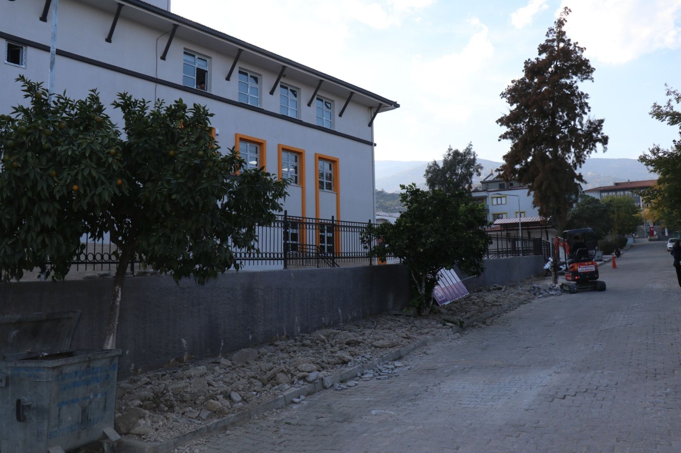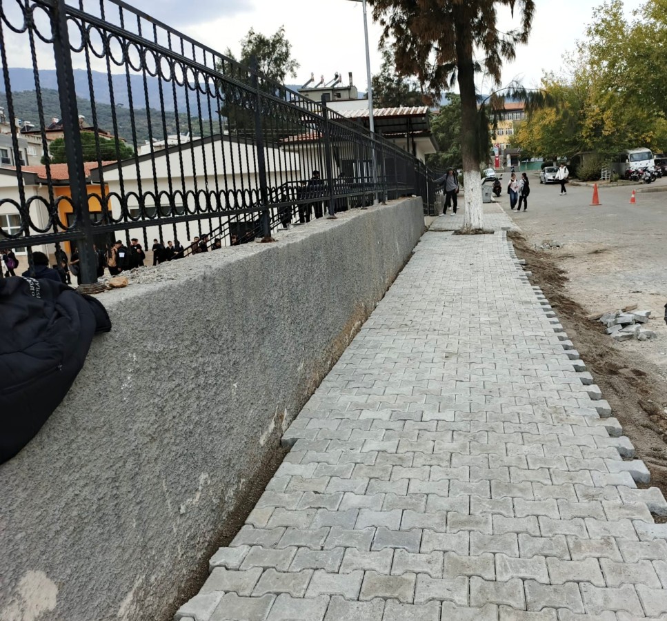 Okul girişindeki bozuk zeminler yenilenmiş, yaya hareketliliğinin yoğun olduğu alanlarda kaldırım hatları modern bir görünüme kavuşturulmuştur. Böylece öğrencilerimiz ve velilerimiz için hem güvenli hem de estetik bir çevre oluşturulmuştur.
