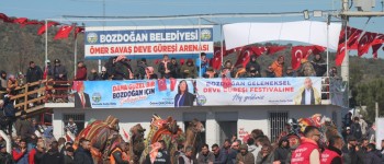 Bozdoğan'ın köklü geleneklerinden biri olan 20. Geleneksel Deve Güreşi Festivali, bu yıl da büyük bir katılımla gerçekleştirildi. Cumhuriyet Halk Partisi Aydın Milletvekili Sayın Evrim Karakoz, Aydın Büyükşehir Belediye Başkanı Sayın Özlem Çerçioğlu, Bozdoğan Kaymakamı Sayın Yunus Emre Polat, Cumhuriyet Halk Partisi Aydın İl Başkanı Sayın Hikmet Saatçı, Milliyetçi Hareket Partisi Aydın İl Başkanı Sayın Haluk Alıcık, ilçe belediye başkanları, Cumhuriyet Halk Partisi Bozdoğan İlçe Başkanı Sayın Hasan Karayer,meclis üyeleri ve muhtarlarımızın katılımlarıyla düzenlenen festival, vatandaşlarımızın yoğun ilgisiyle renkli görüntülere sahne oldu.