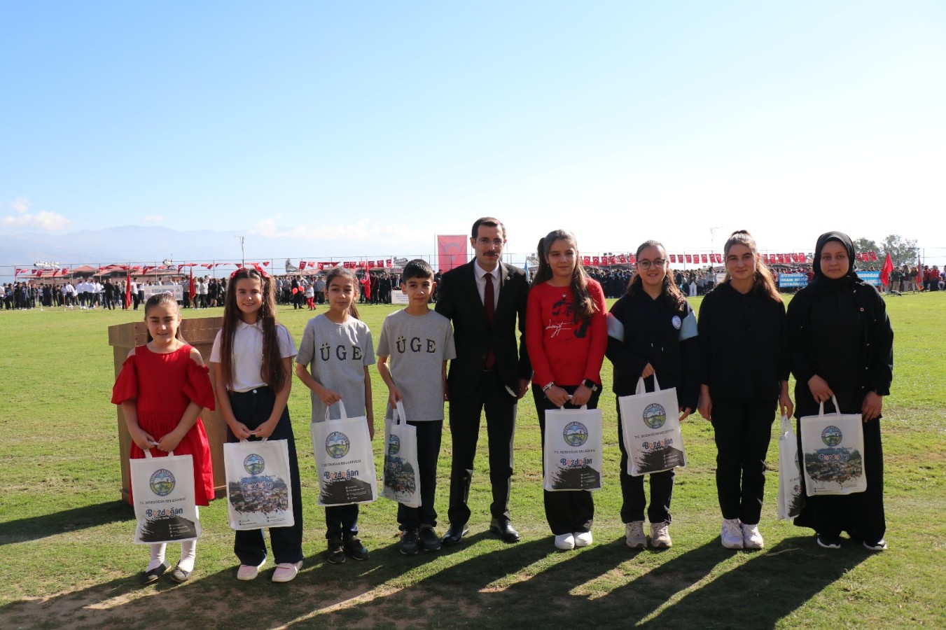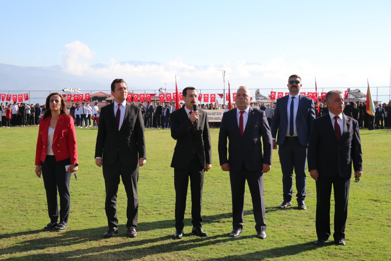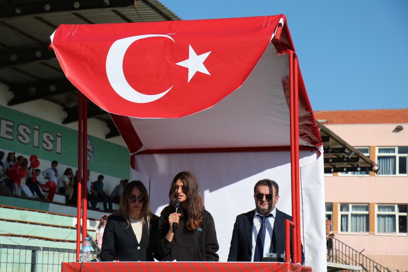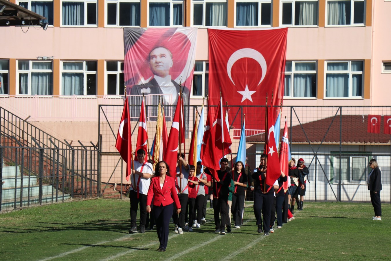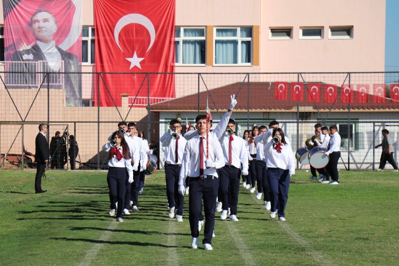 Kaymakamımız Sayın Yunus Emre POLAT, Belediye Başkanımız Sayın Mustafa Galip ÖZEL, Cumhuriyet Savcımız Sayın Hüsameddin GÖRÜNMEZ ve ilçe protokolü üyelerinin yanı sıra öğretmenlerimiz, öğrencilerimiz ve vatandaşlarımızın yoğun katılımıyla gerçekleştirilen törende, Cumhuriyetimizin 102 yıllık onurlu yolculuğu büyük bir heyecanla anıldı.