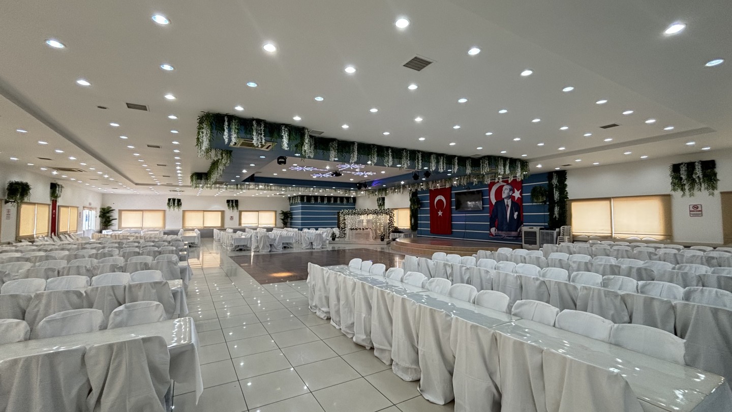 Yapılan yenileme çalışmalarıyla birlikte hem kullanım konforu artırılan hem de daha estetik bir görünüme kavuşan Kapalı Düğün Salonumuz, vatandaşlarımızın en özel günlerine ev sahipliği yapmayı sürdürecek.