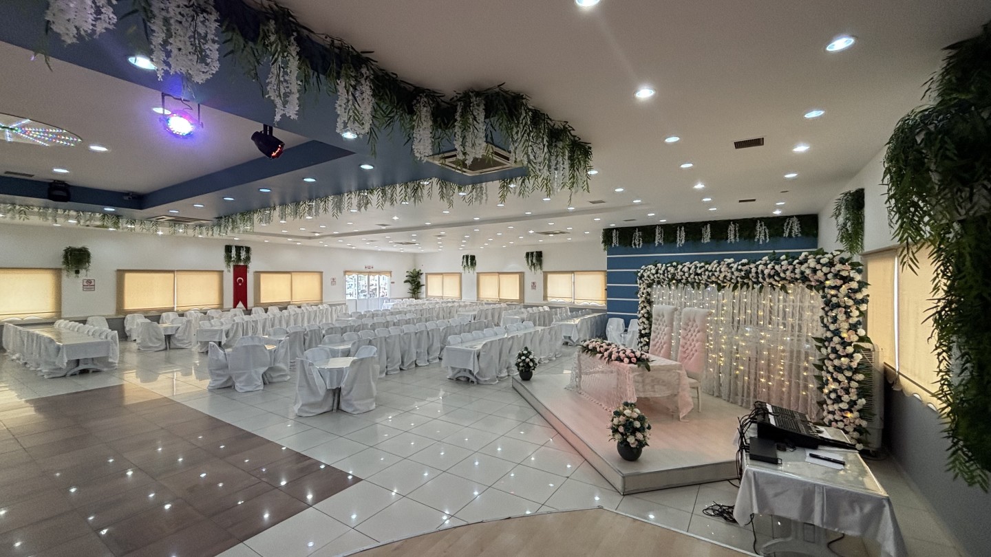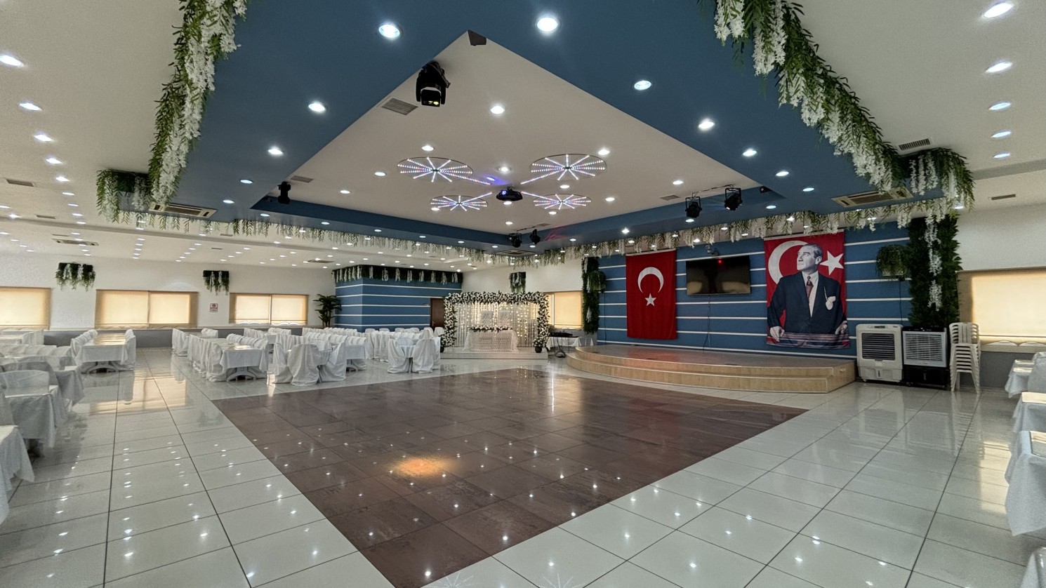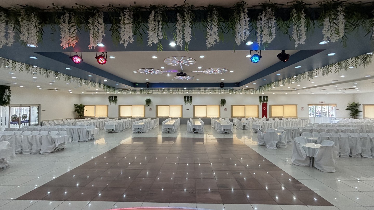 Toplam 800 kişilik kapasitesi, gelişmiş ses ve ışık sistemleri ile ferah salon düzeni sayesinde düğün, nişan, sünnet töreni, mezuniyet ve çeşitli özel organizasyonlar için uygun bir ortam sunan salonumuz, ilçemizde önemli bir ihtiyaca cevap vermeye devam ediyor.