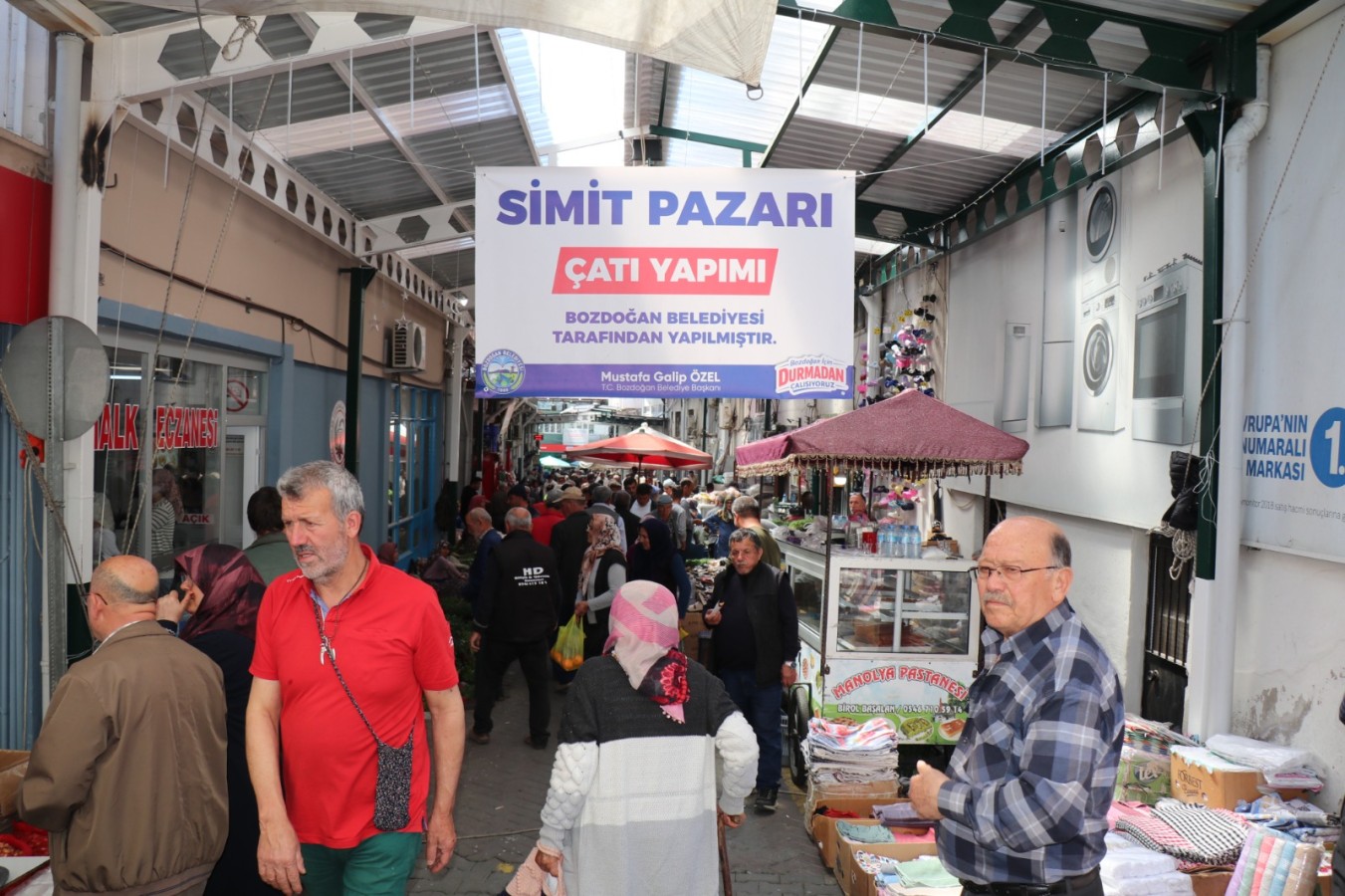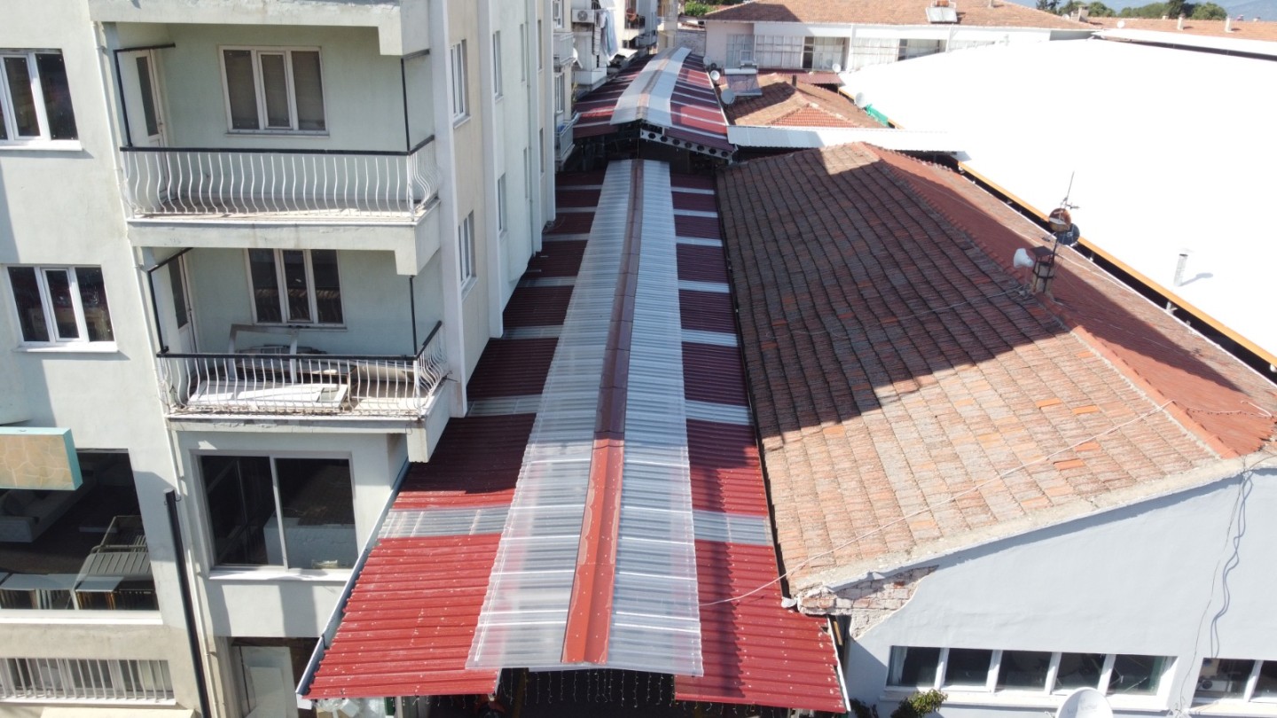 Bozdoğan Belediyesi tarafından vatandaşların ve esnafın özellikle yağışlı havalarda alışverişlerini daha güvenli ve kesintisiz şekilde sürdürebilmesi amacıyla Simit Pazarı Sokağı’nda yürütülen çatı yapım çalışması tamamlandı.