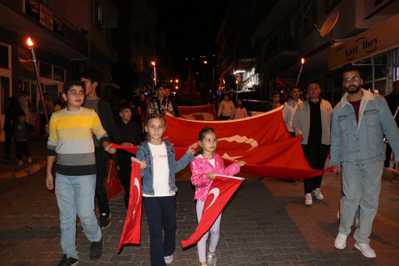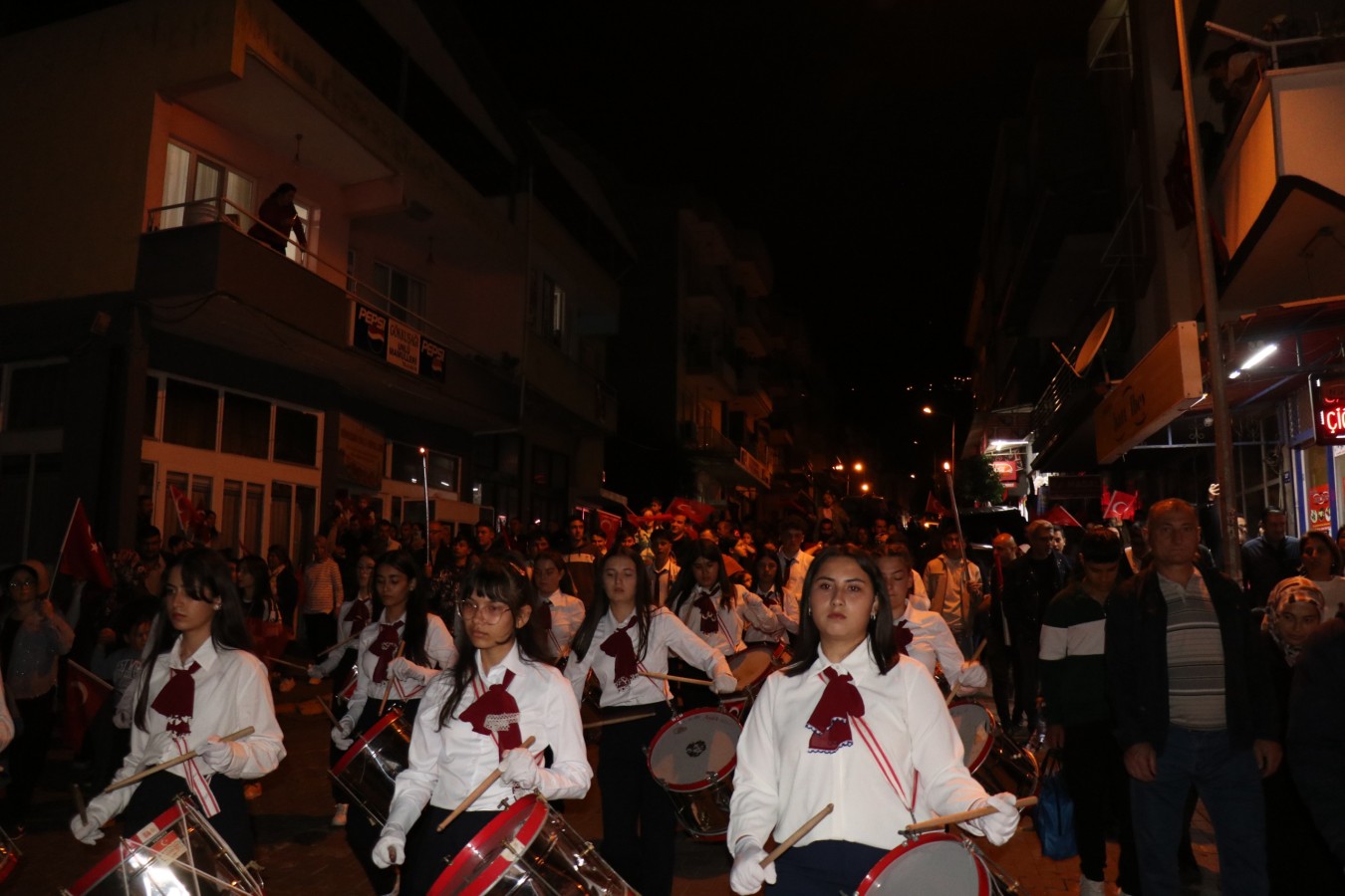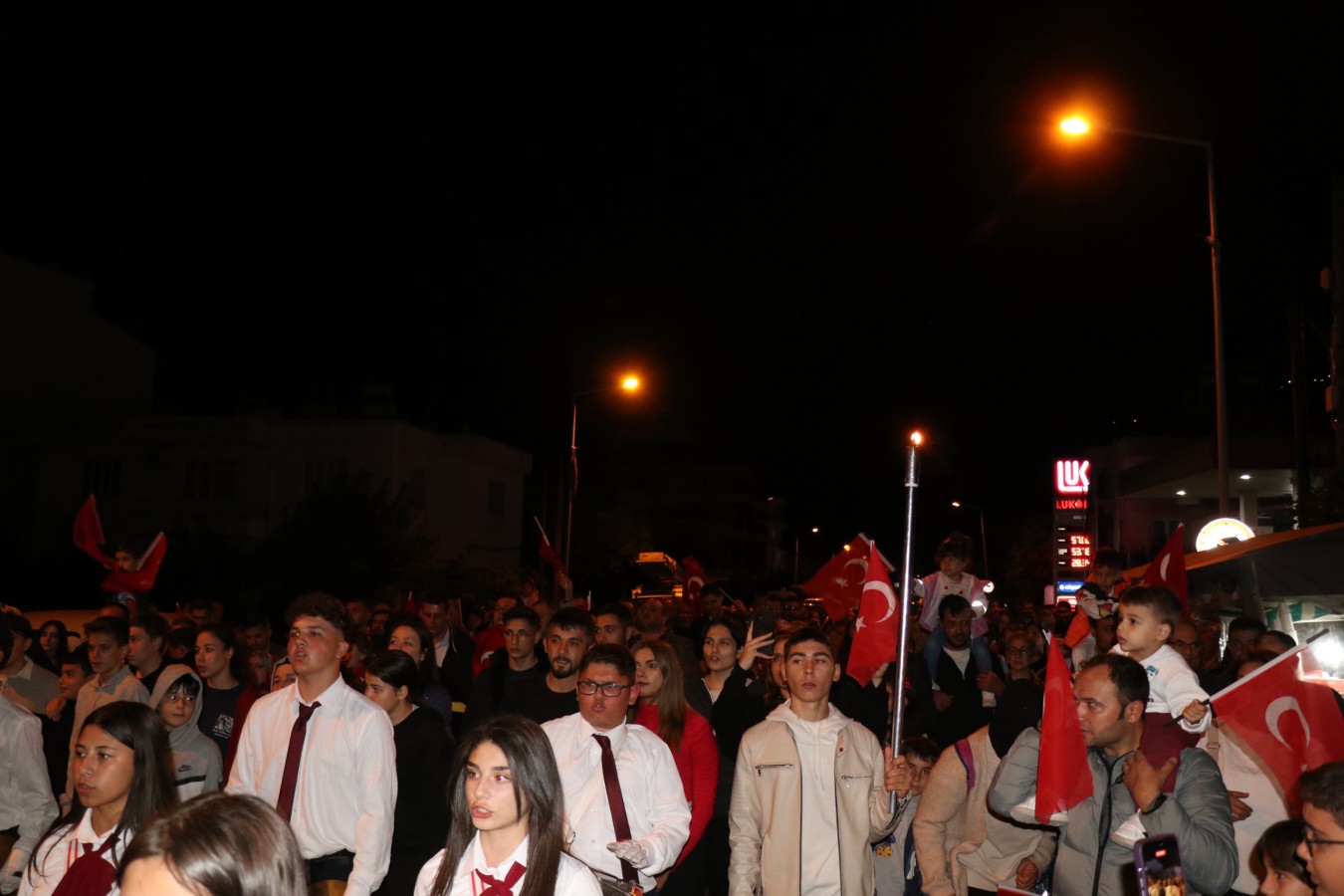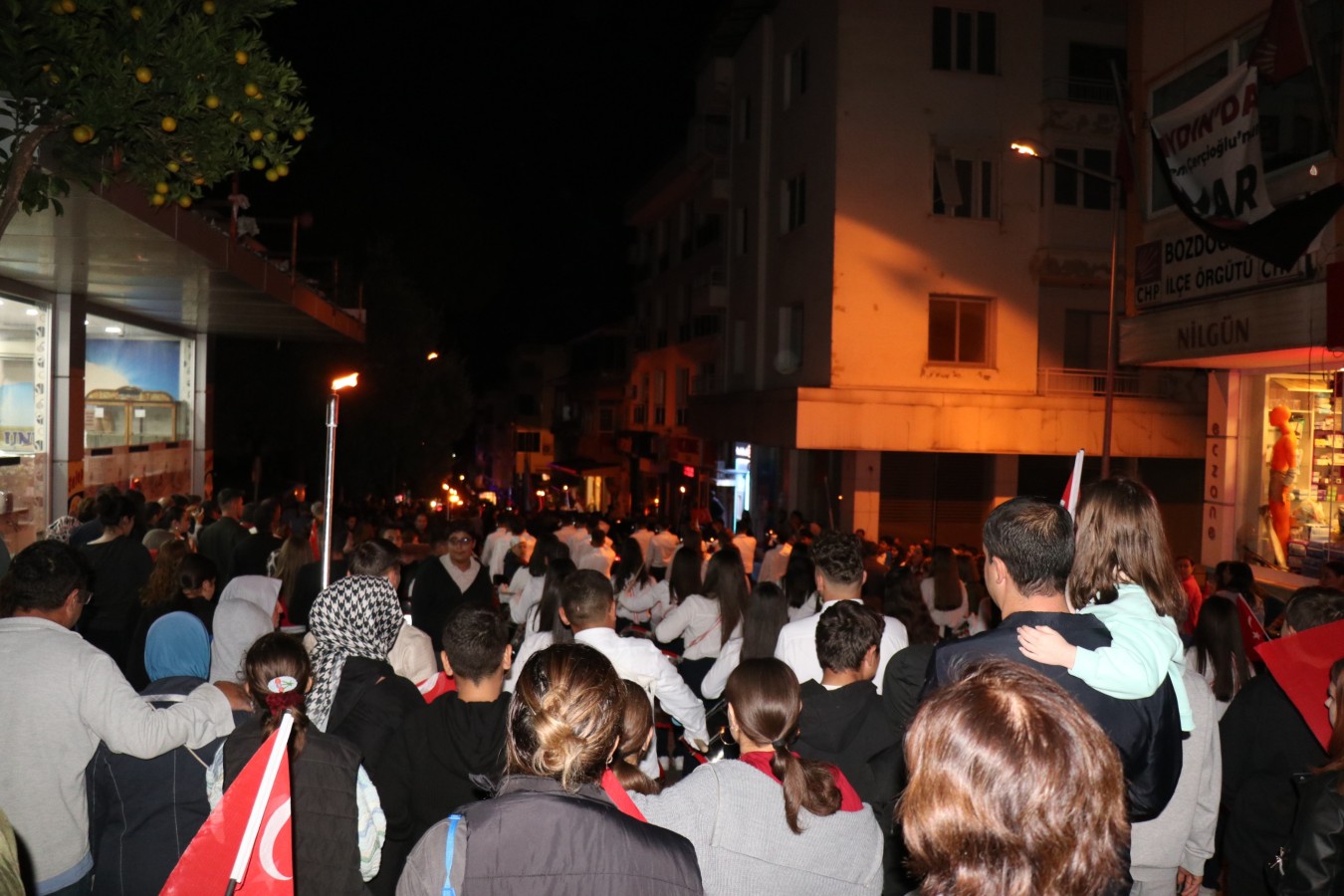 Bando takımı eşliğinde ellerinde Türk bayrakları ve meşalelerle yürüyen Bozdoğan halkı, marşlarla ve alkışlarla Cumhuriyet coşkusunu caddelere taşıdı.