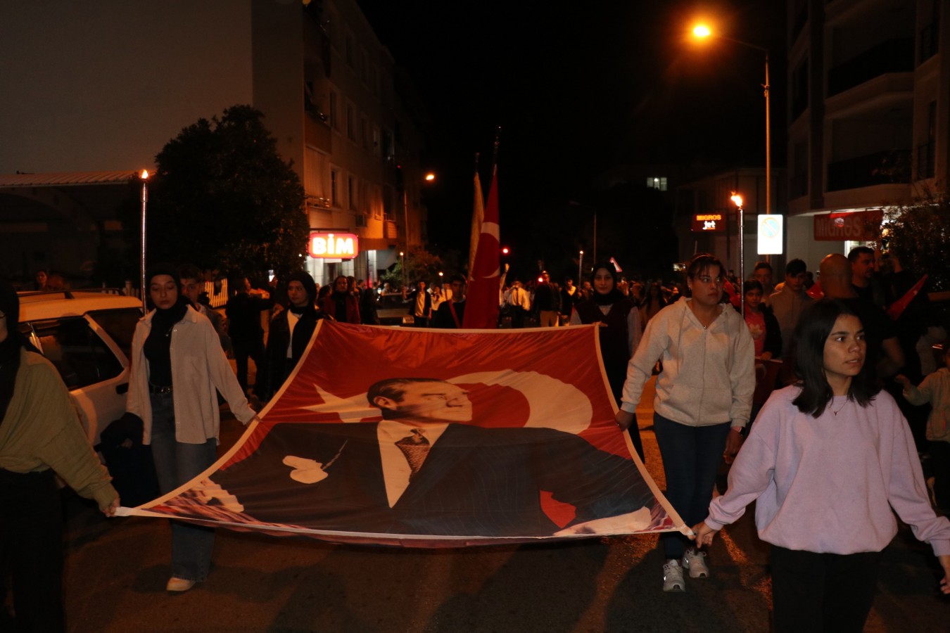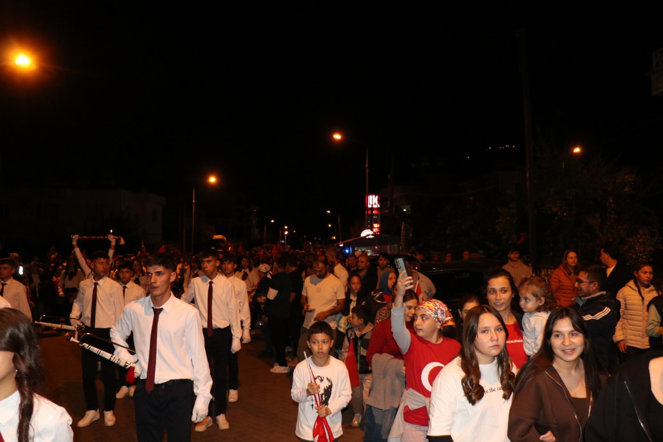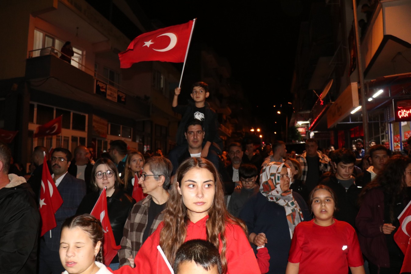 Bando takımı eşliğinde ellerinde Türk bayrakları ve meşalelerle yürüyen Bozdoğan halkı, marşlarla ve alkışlarla Cumhuriyet coşkusunu caddelere taşıdı.