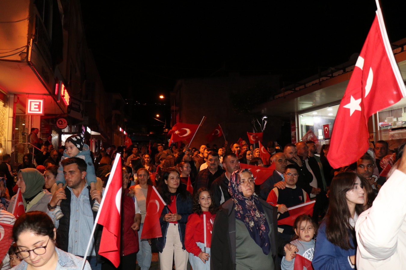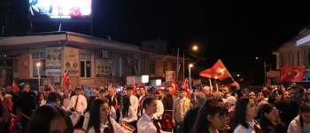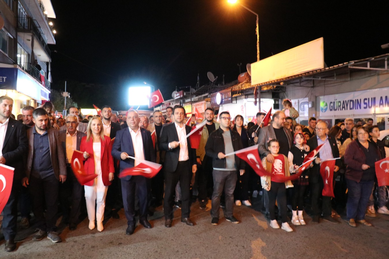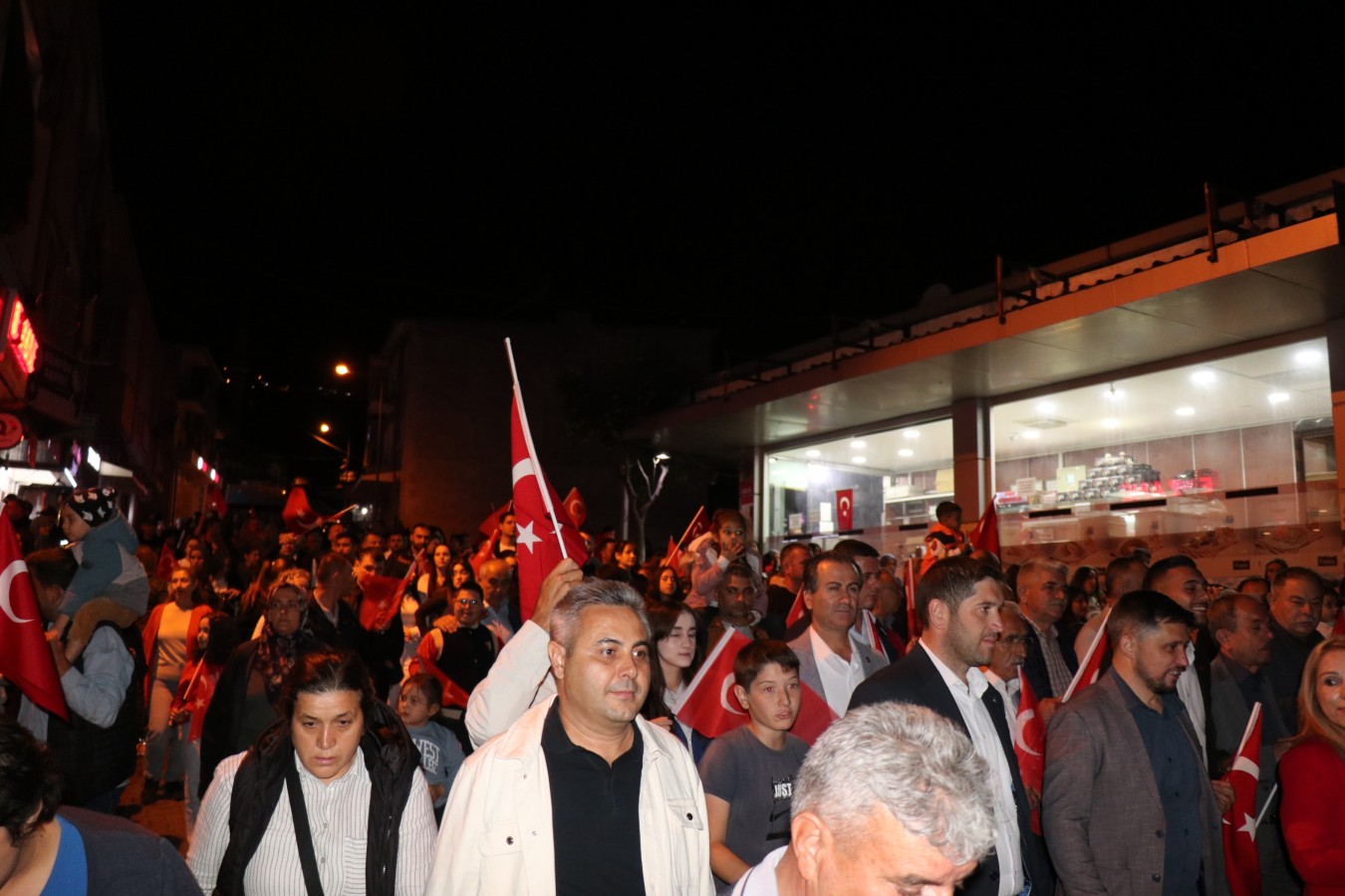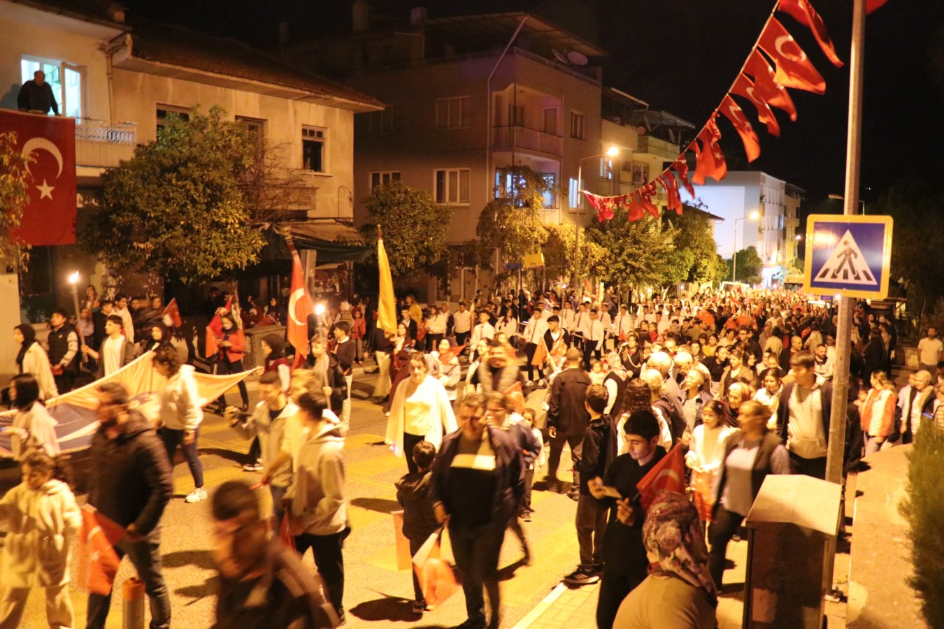 Bando takımı eşliğinde ellerinde Türk bayrakları ve meşalelerle yürüyen Bozdoğan halkı, marşlarla ve alkışlarla Cumhuriyet coşkusunu caddelere taşıdı.